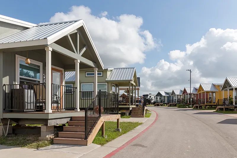 The Village has been intentionally designed to encourage community. Each home has a front porch, and homes are clustered around common areas with laundry rooms, restroom and shower facilities, outdoor community kitchens and green space. These shared areas encourage interactions among neighbors, helping them form relationships and build community.