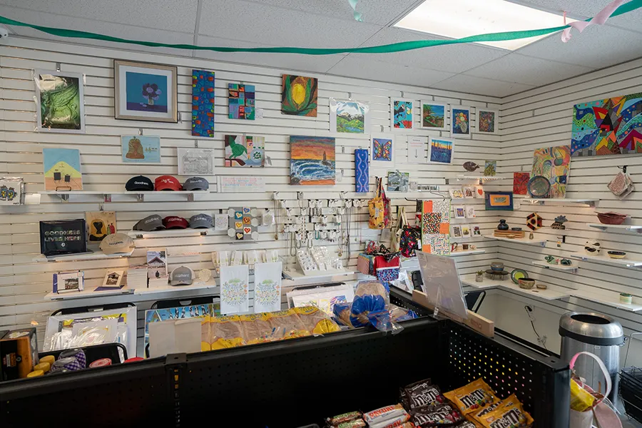Located in Community First! Village, the Community Market is a central hub where visitors and neighbors alike can find connection, convenience and keepsakes. Here you’ll find an eclectic array of unique art and handcrafted gifts made by formerly homeless artists who live in the Village, as well as branded shirts, hats, bags, mugs and more – what we call “Goodness Gear.”